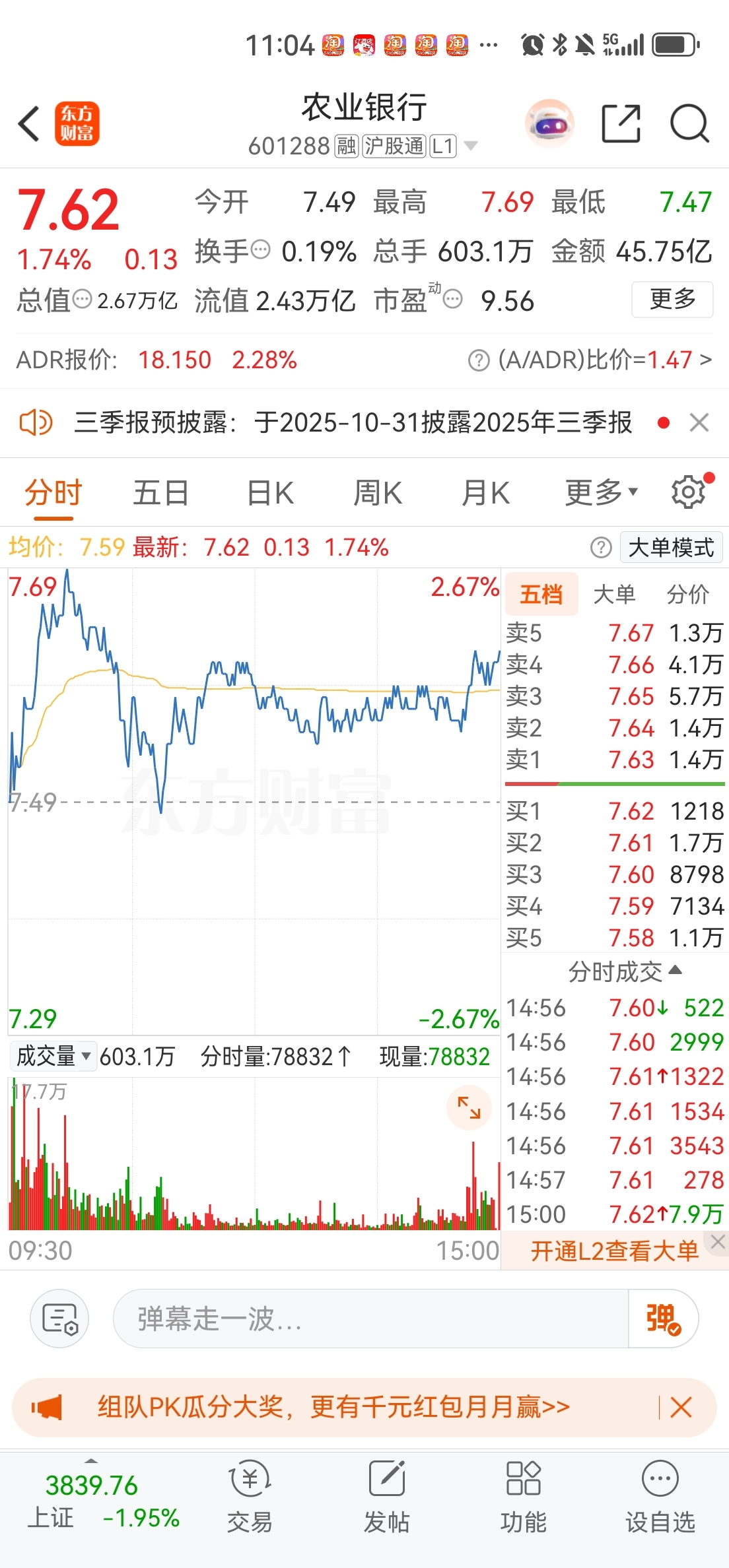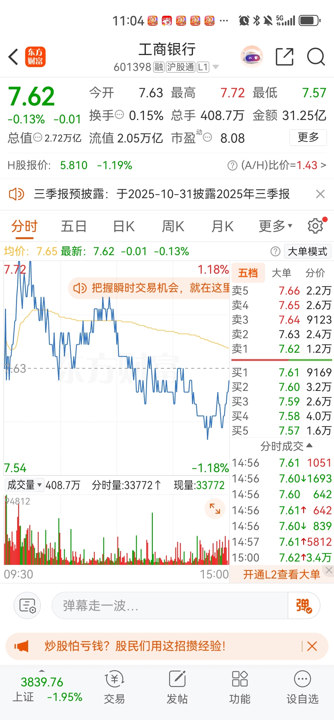 具有历史性纪念意义的一天,工行和农行收盘价一样