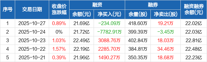 工商银行:融资净偿还234.09万元,融资余额21.69亿元(10-27)