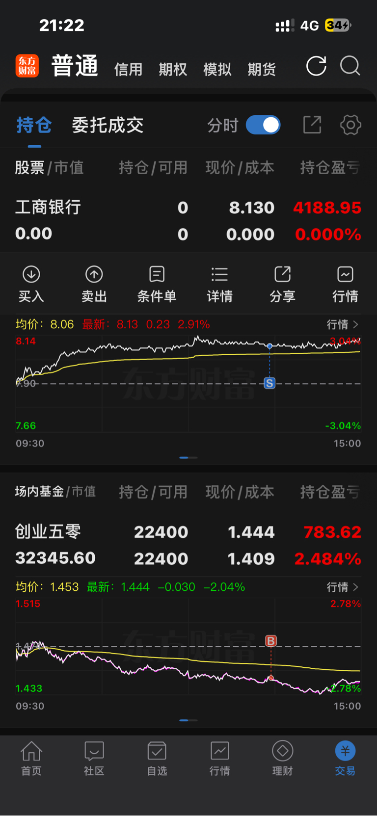 忍痛割爱,卖了工行,看明天怎么样吧!在跌就补仓