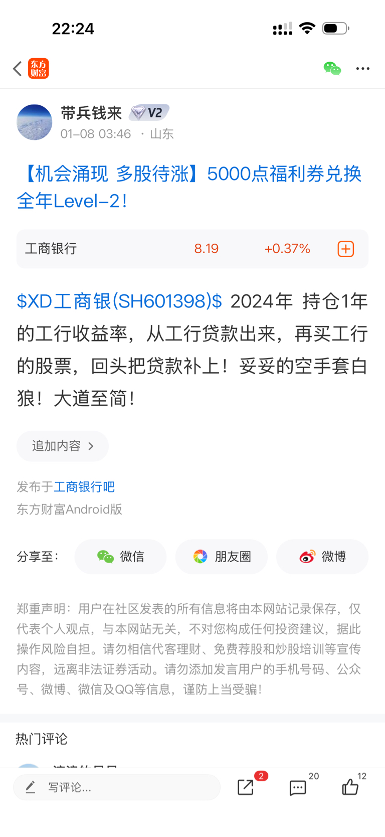 温馨提示: 1.根据《证券法》规定,禁止编造、传播虚假信息或者误导性信息,扰乱证券市场;2.用户在本社区发表的所有资料、言论等仅代表个人观点,与本网站立场无关,不对您构成任何投资建议。用户应基于自己的独立判断,自行决定证券投资并承担相应风险。《东方财富社区管理规定》