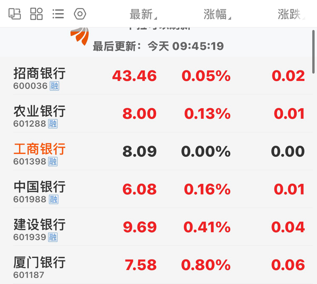 $工商银行(SH601398)$ 家家都红 就你不一样