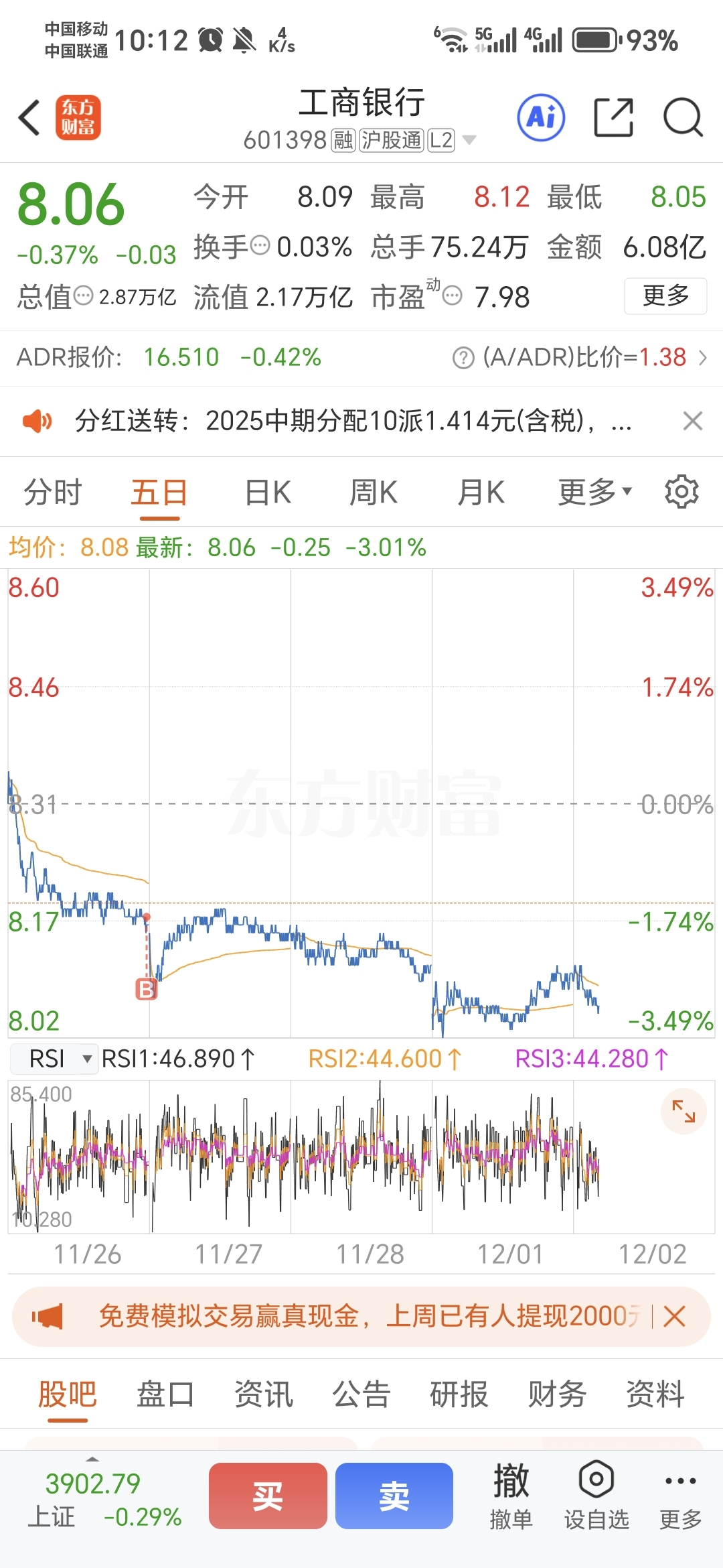 $工商银行(SH601398)$ 果然不是散户能买的,一买就跌