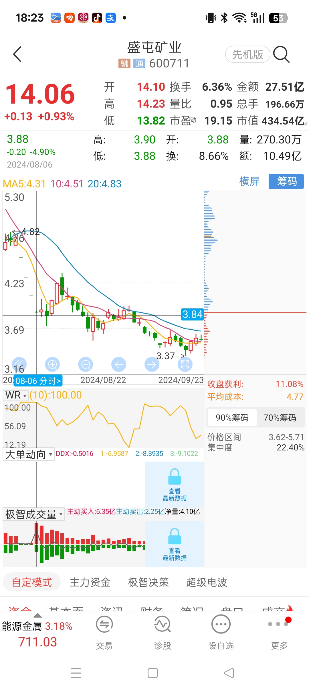 自去年盛屯矿业被ST之后,一直关注,并在股价四块钱之内建仓。其后,根据走势努力做T,并保留底仓,目前早已把持仓成本做成负数,市盈率三百多。