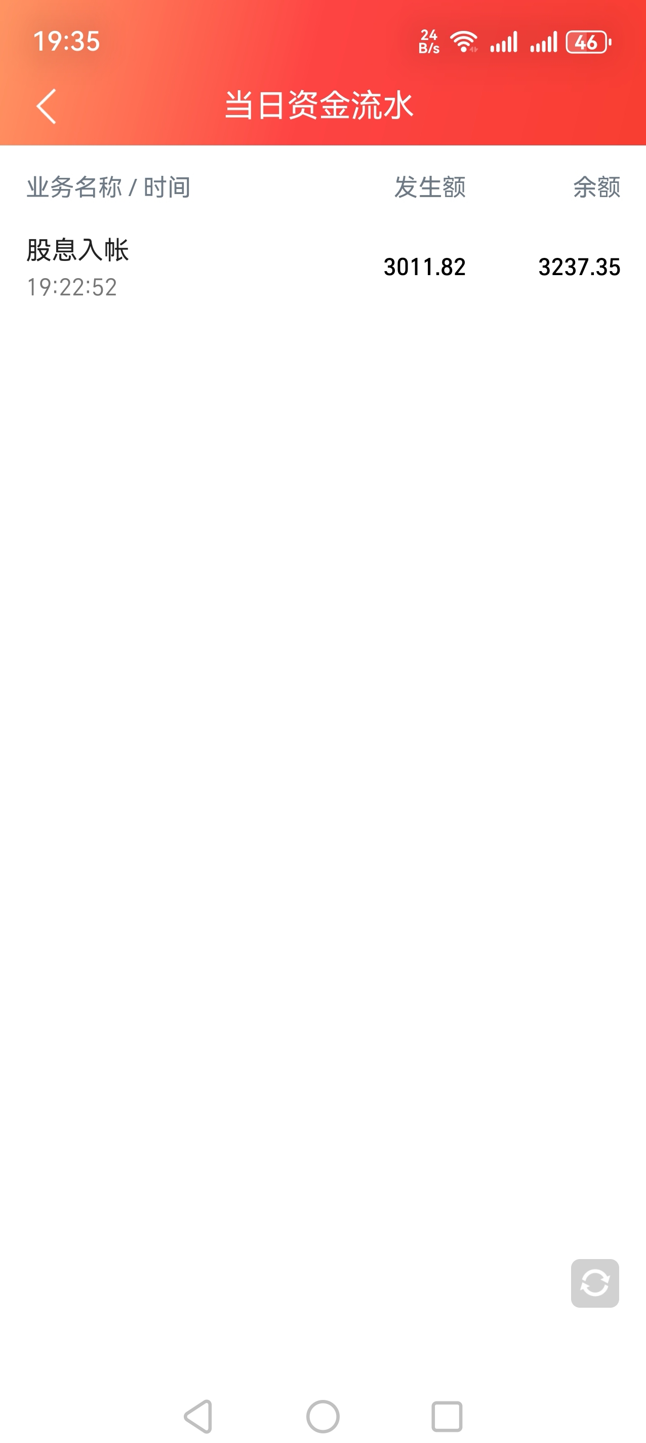 分红到账,中信证券已经到账给大家上图。