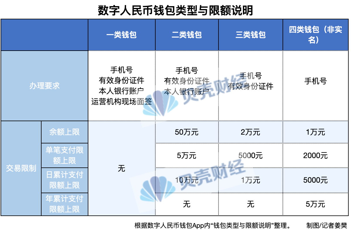 值得注意的是,数字人民币钱包分为四类钱包。其中,一类、二类、三类钱包为实名钱包,四类钱包为非实名钱包。因此四类钱包不属于各家银行计息的“实名钱包”范畴。交行在公告中明确,如客户开立的数字人民币钱包为四类个人钱包,则钱包内的余额不计付利息。