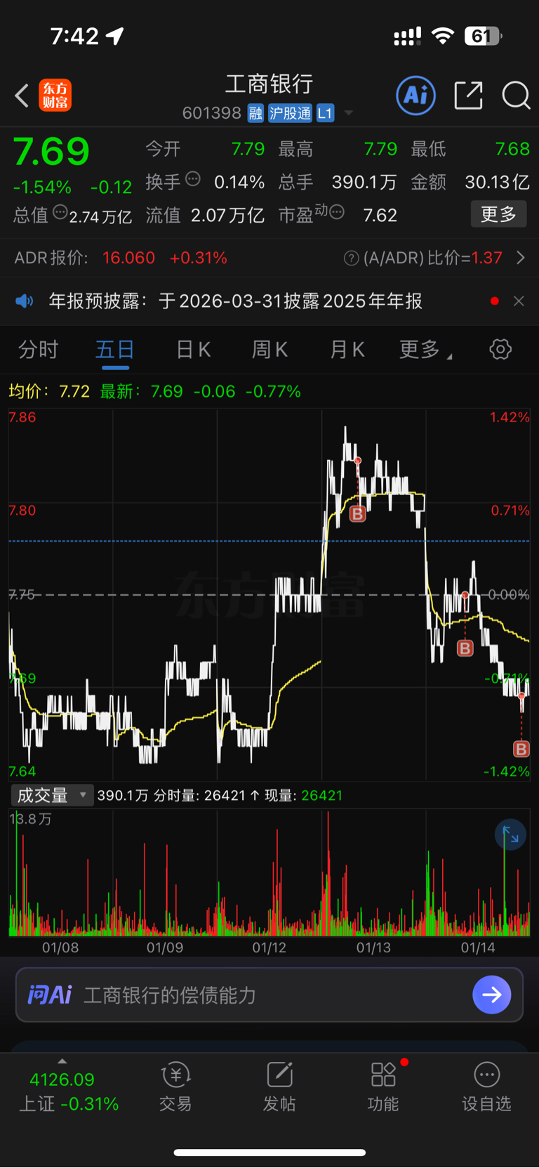 $工商银行(SH601398)$ 我这什么实力,家人们