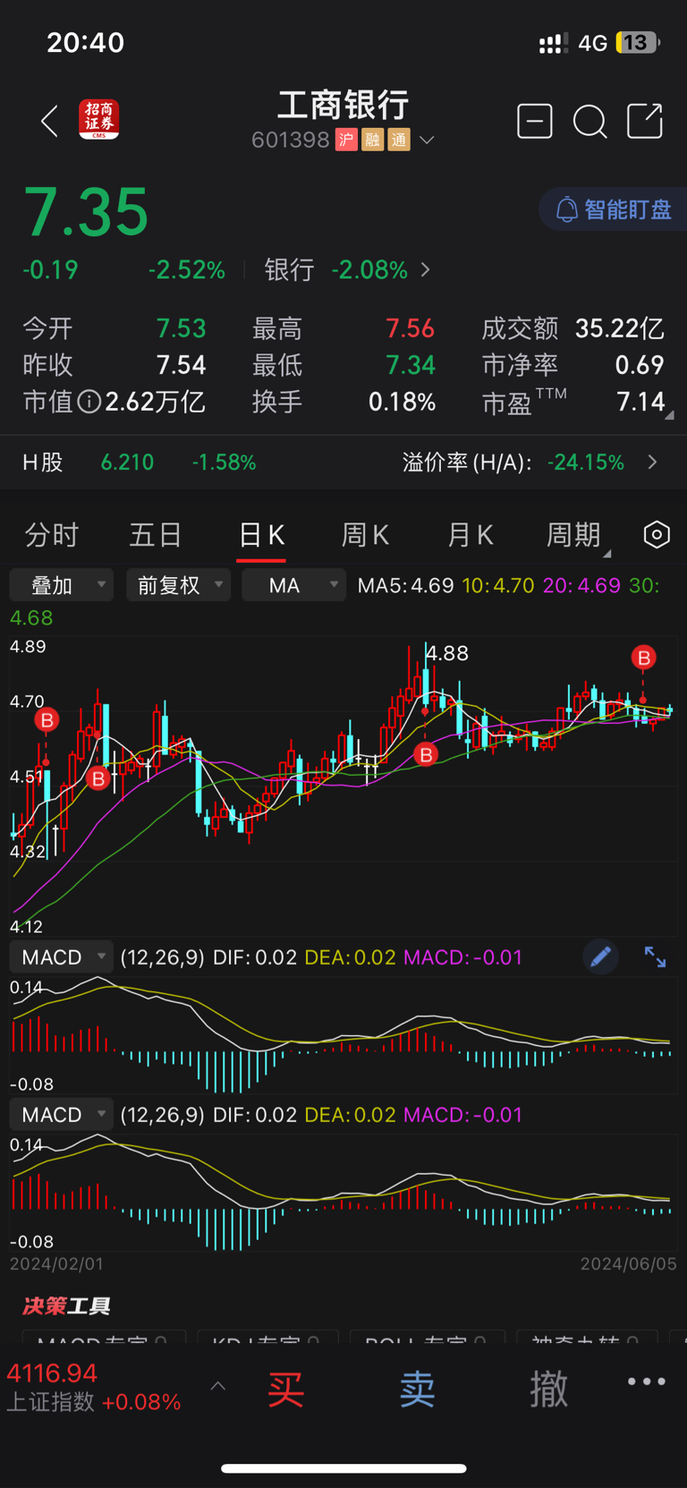 $工商银行(SH601398)$ 价值投资!你可以慢慢跌!跌到我这个价位,估计小日子都会买!全球工商银行,大家都知道