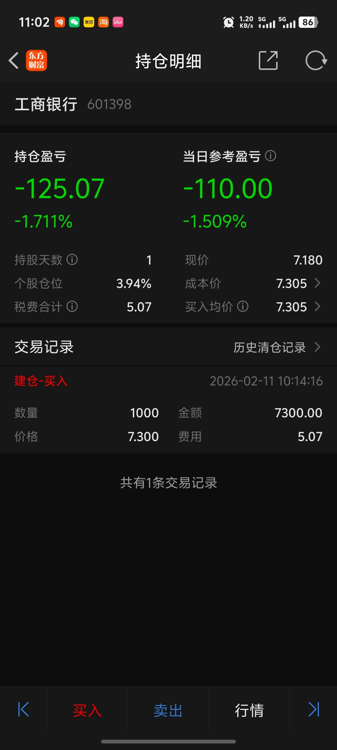 $工商银行(SH601398)$ 对不起,我昨天买崩了