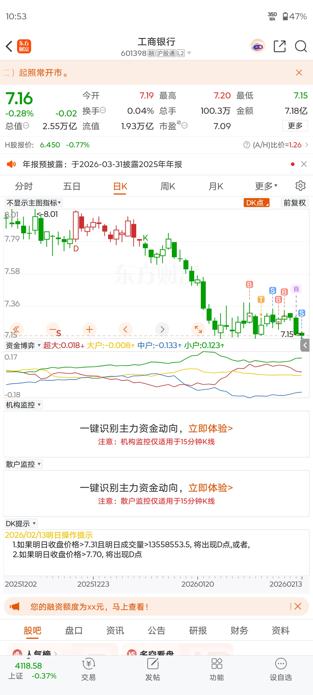 $工商银行(SH601398)$ 走了没意思亏了1500认输