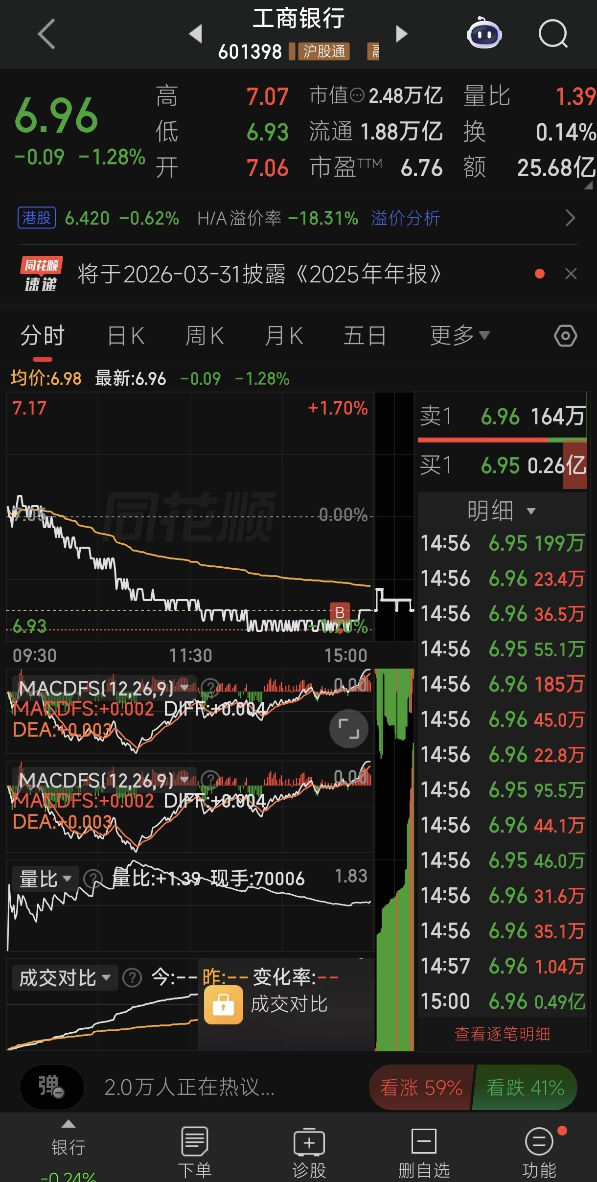 $工商银行(SH601398)$ 买一些