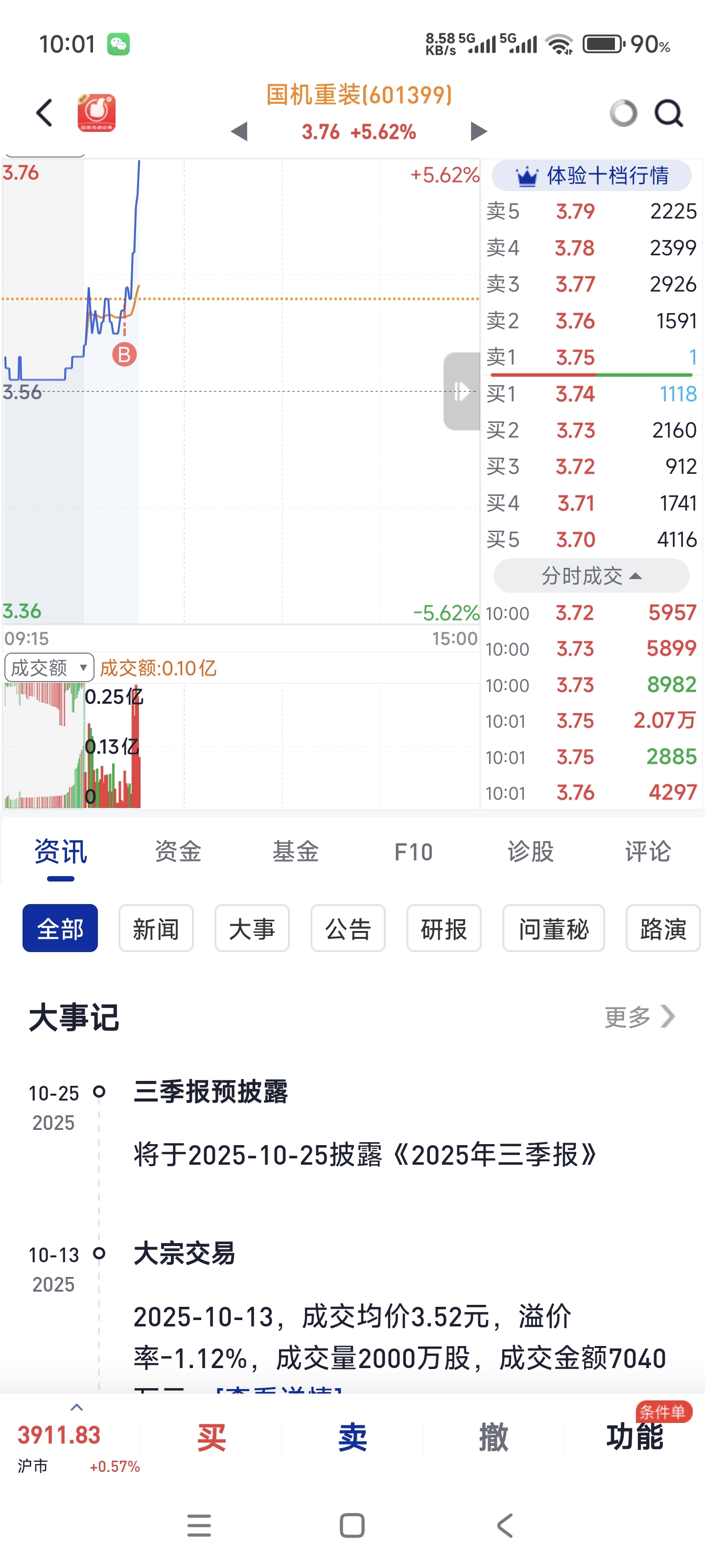 $国机重装(SH601399)$ 大众赚了4个点,然后我又杀回来了。3进两出。