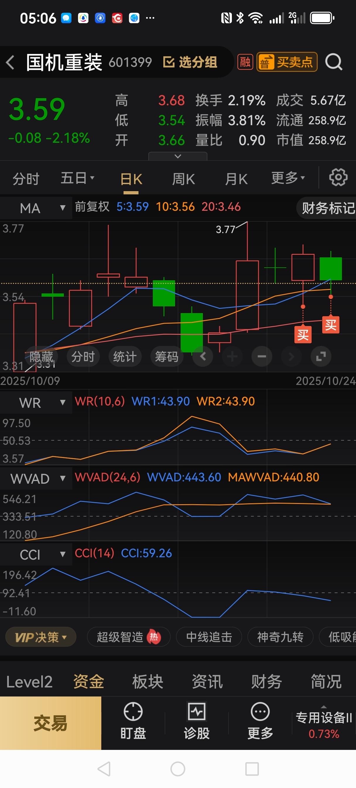 国机重装,10月23号,建仓3.58,10月24号,加仓3.55。