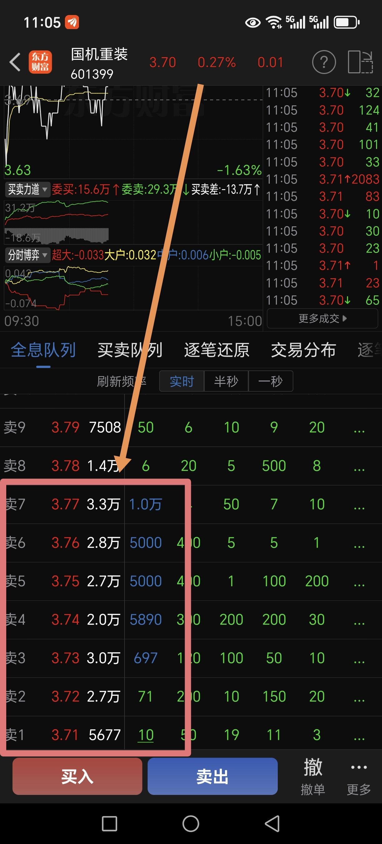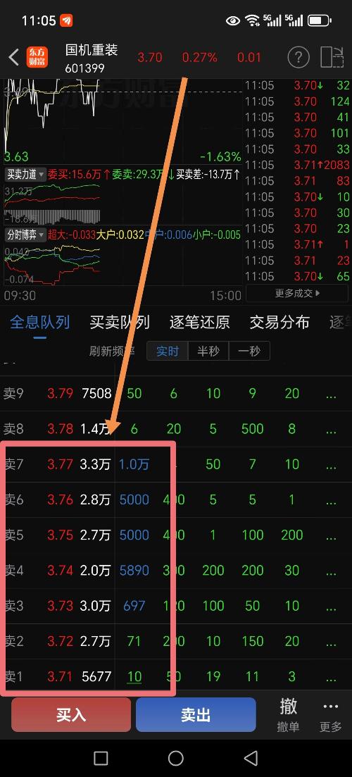 庄家在卖盘排的这些单,就是要诱迫散户在3.77下方交出筹码的。