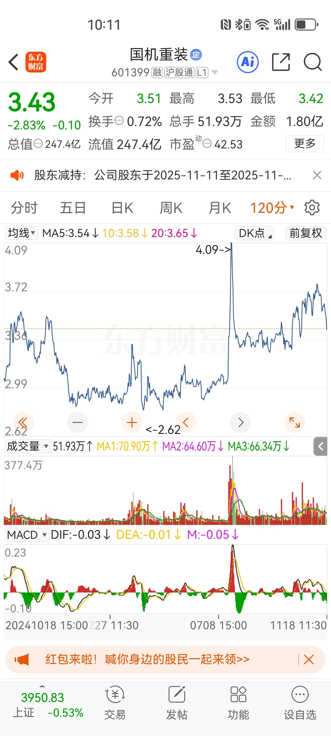 $国机重装(SH601399)$ 跌到我的成本线了,再跌再补