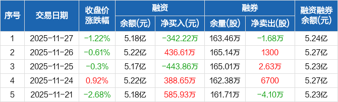 国机重装:融资净偿还342.22万元,融资余额5.18亿元(11-27)