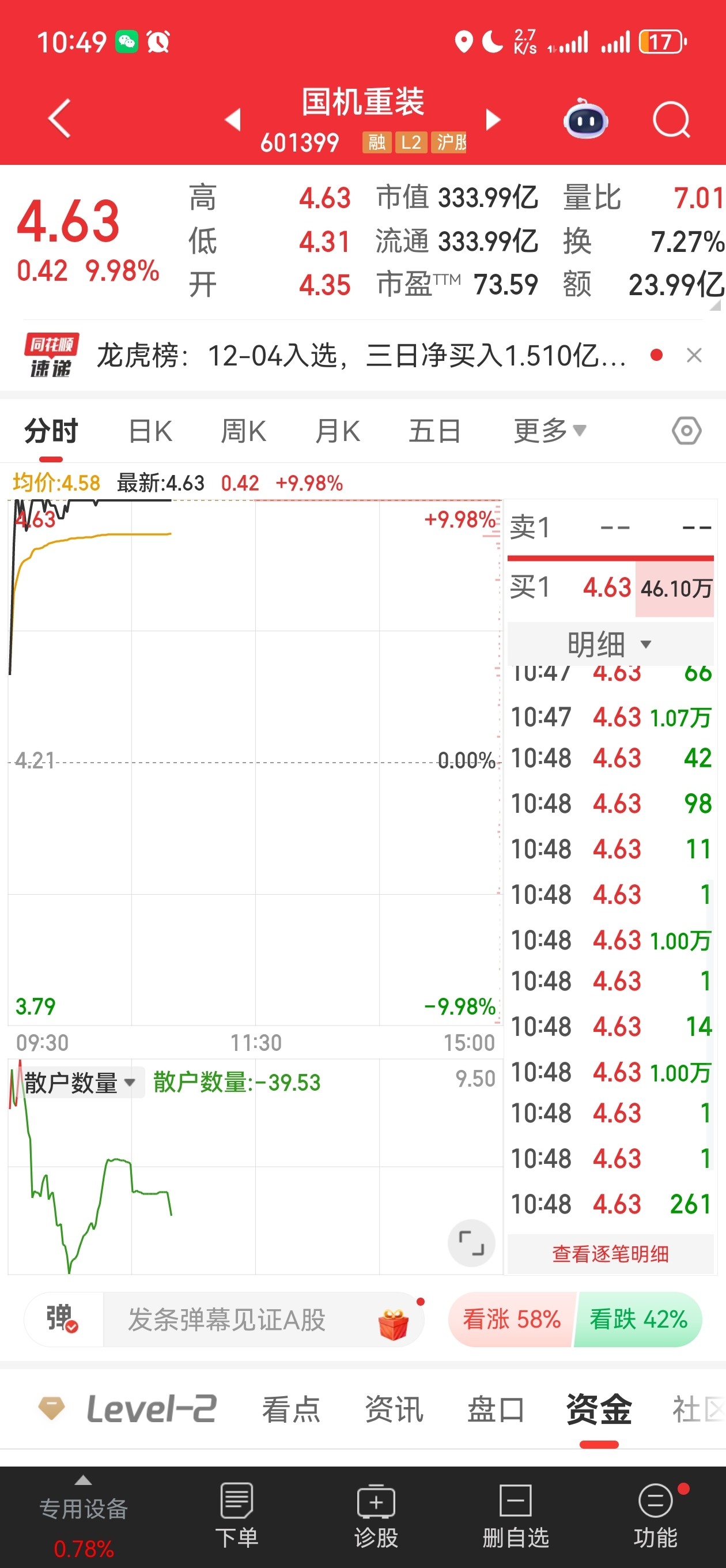 $国机重装(SH601399)$ 悄悄板上慢慢万手出货,就等小散接盘