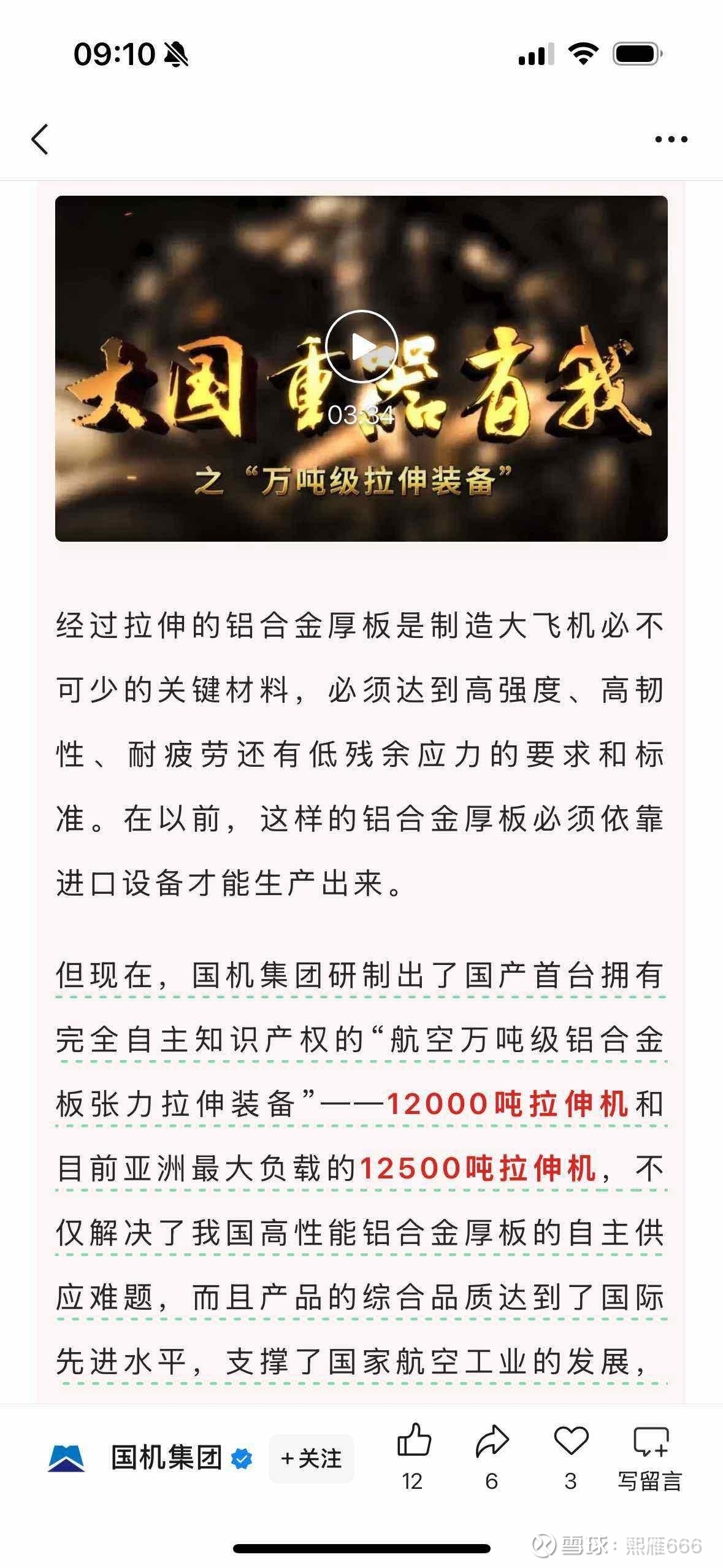 $国机重装(SH601399)$ 2024年1月8日回复称,公司自主设计、制造、安装的8万吨模锻压力机,为解决航空级铝合金厚板、大飞机承力构件等“卡脖子”问题、保障C919大型客机等国家重点工程项目顺利实施提供了有力支撑。