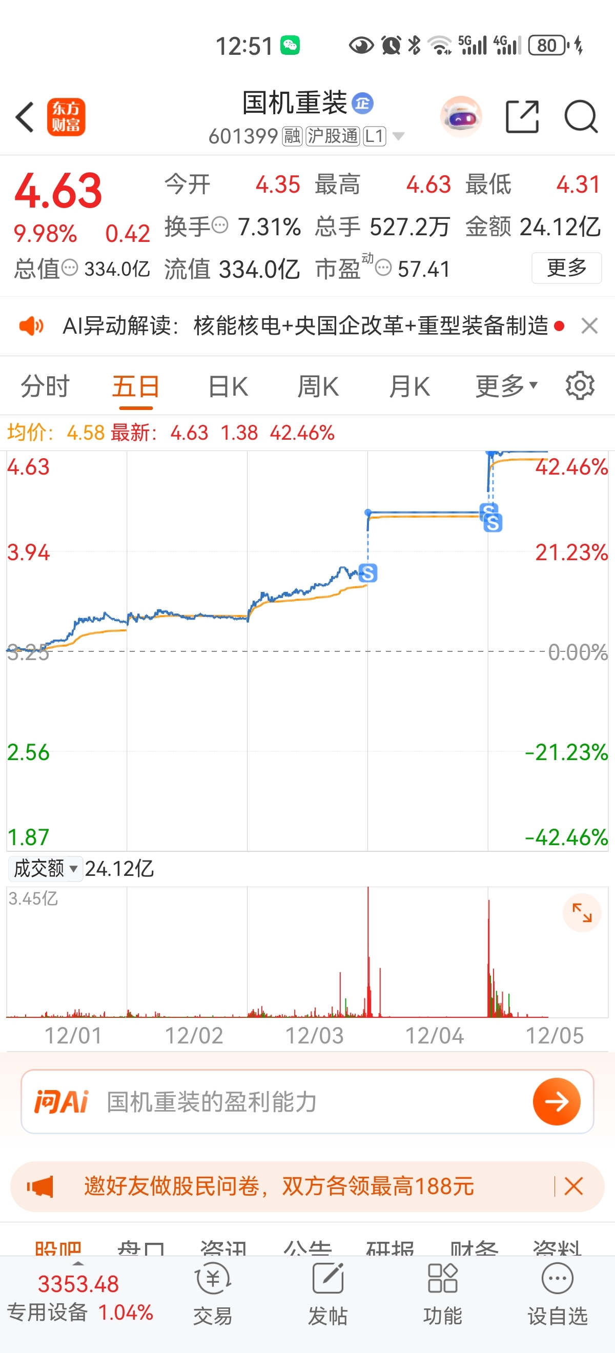 $国机重装(SH601399)$ 留点抛点不敢格局,胆子有点小哈