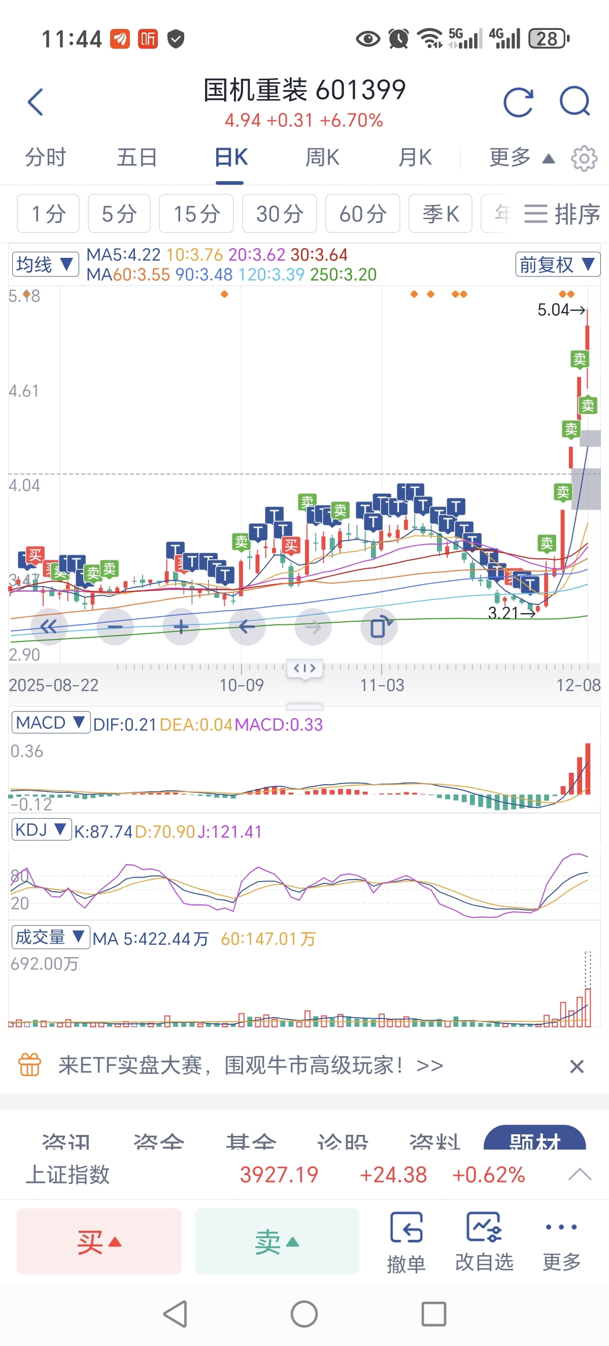白白了我的兄弟姐妹们哈哈以后不在炒股了,这是我捞到的第一桶金。谢谢股市谢谢国机重