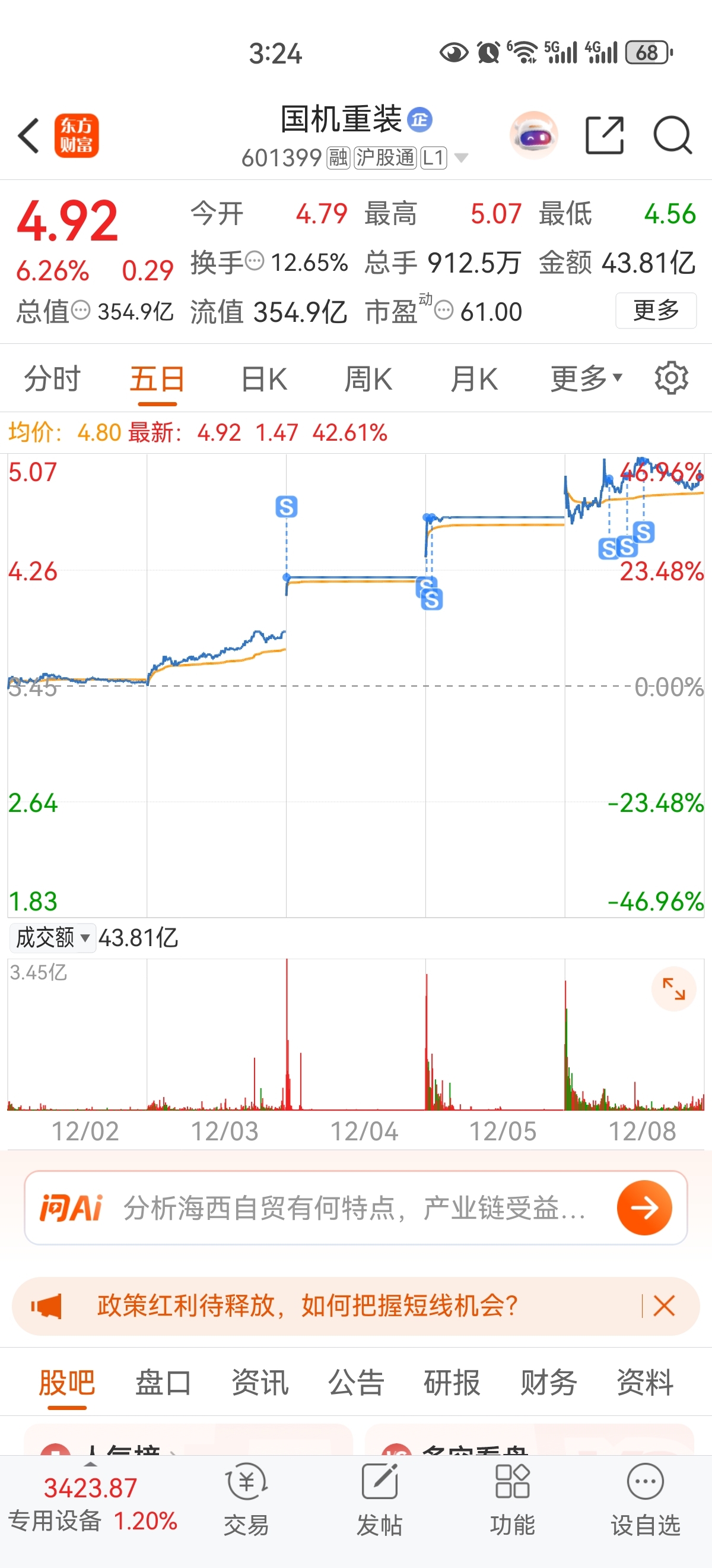 $国机重装(SH601399)$ 今天继续卖明天待定