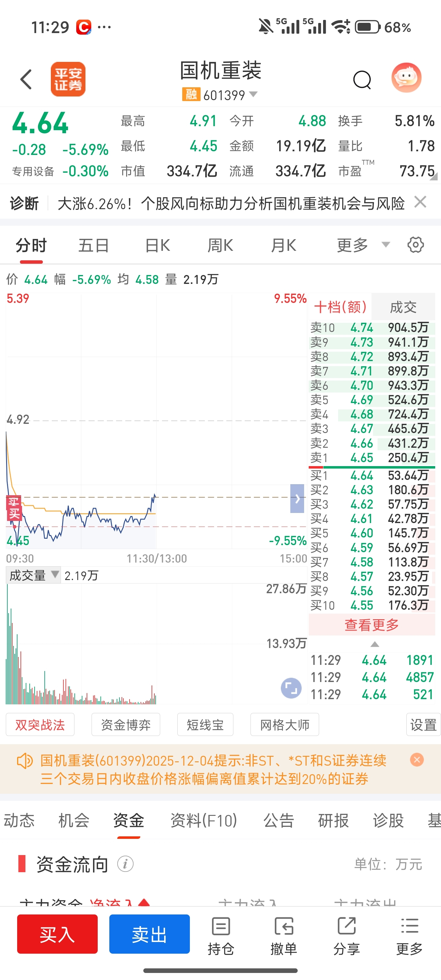 $国机重装(SH601399)$ 早盘就说那些空狗蠢,没脑子就别炒股