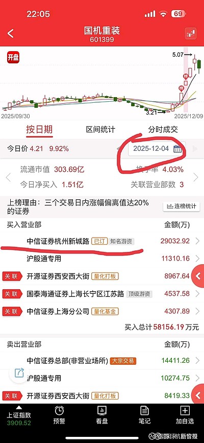 太巧了,还是12.4!去年12.4新城路上中百集团龙虎榜后,中百集团开启宏伟壮观的主升浪,成为2024年跨年龙头。今年12.4新城路又上了国机重装龙虎榜,国机重装宏伟壮观的主升浪是否要来?国机重装能否复制去年中百集团成为2025年跨年龙头?大家可以讨论。