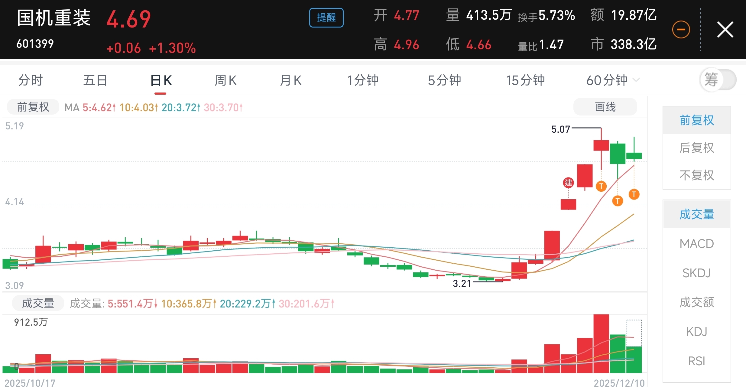 $国机重装(SH601399)$ 海峡在出货了,这个就再格局一下。国之重器,估值回归,逻辑比那些蹭福建地图的亏损票终归是好一些。
