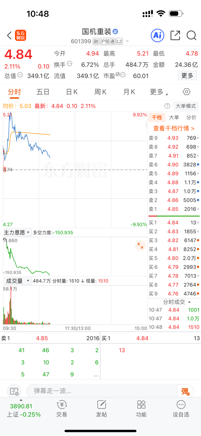 $国机重装(SH601399)$ 这市场太难做了,追进去第二天就爆头。整天3000多家下跌。咋玩呢。我的海马和永鼎收益今天不知道扛不扛得住
