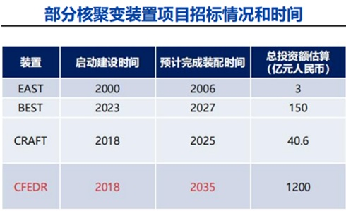 对有“中国可控核聚变天团”之称的EAST(全超导托卡马克核聚变实验装置)、BEST(紧凑型聚变能实验装置)和CRAFT(聚变堆主机关键系统综合研究设施)来说,爱建证券日前的研报估算,合计投资金额约为193.6亿元。