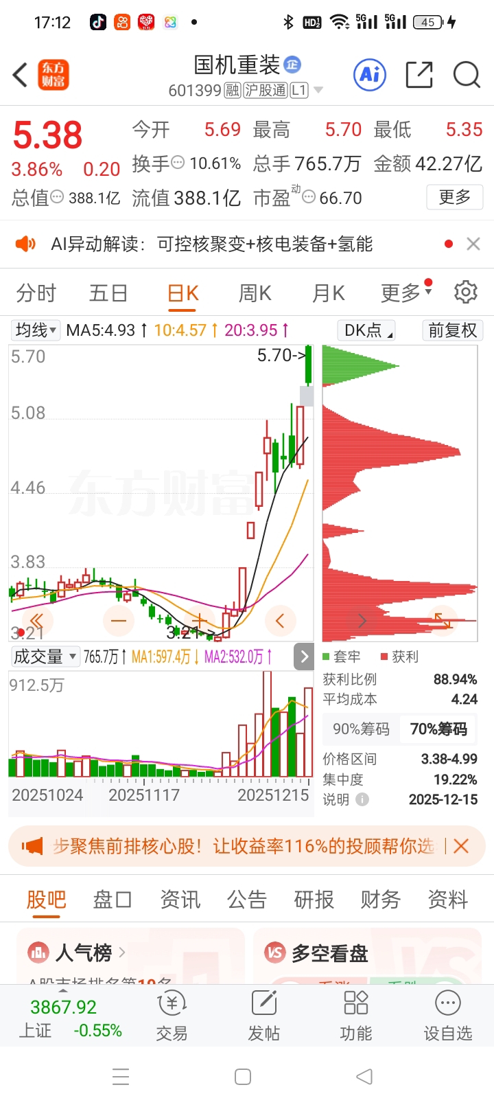 $国机重装(SH601399)$ 庄家央企。银行,底仓没动。洗一下。最多横几天。还是要选择方向的。
