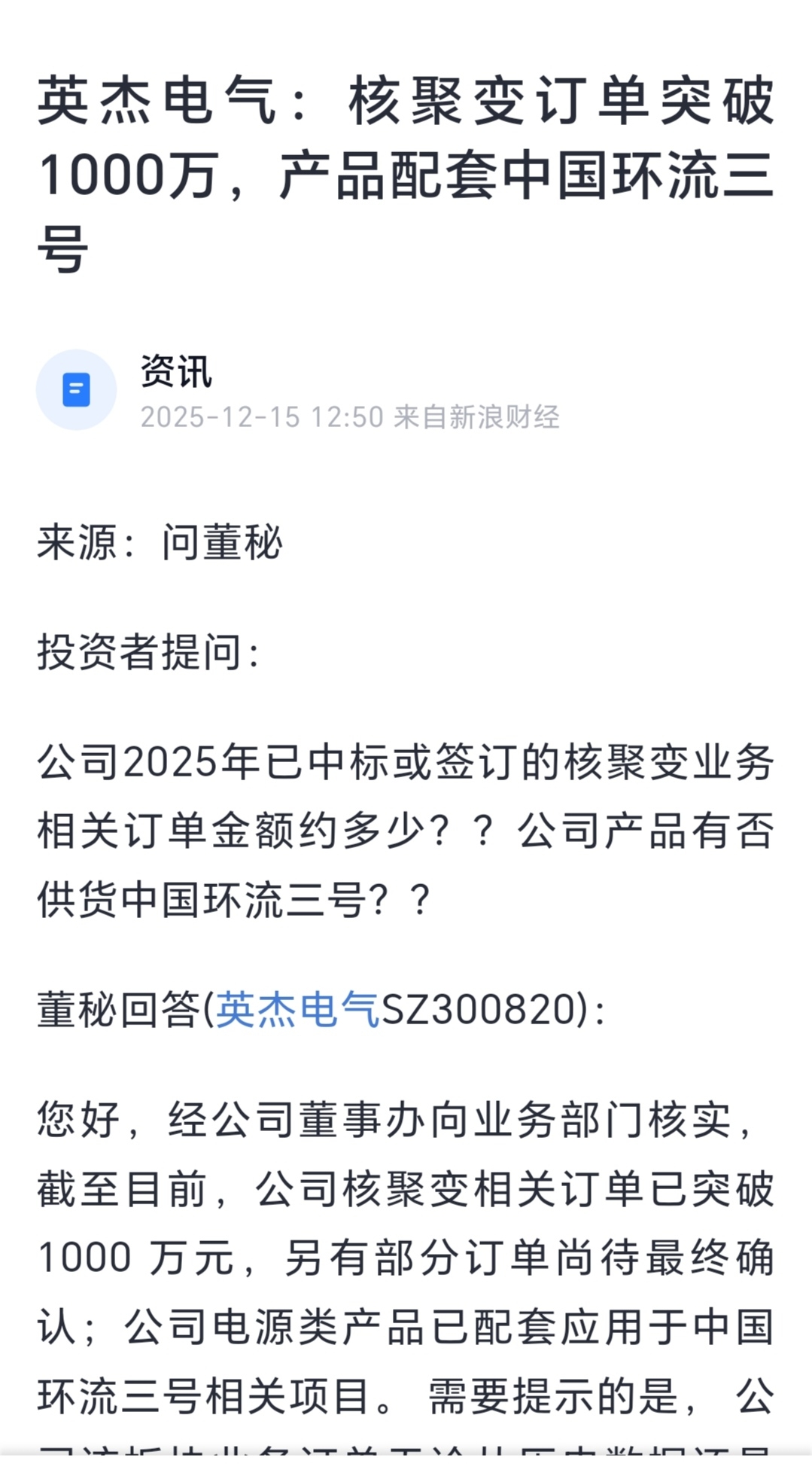 $国机重装(SH601399)$ 英杰电气超预期确认核聚变订单