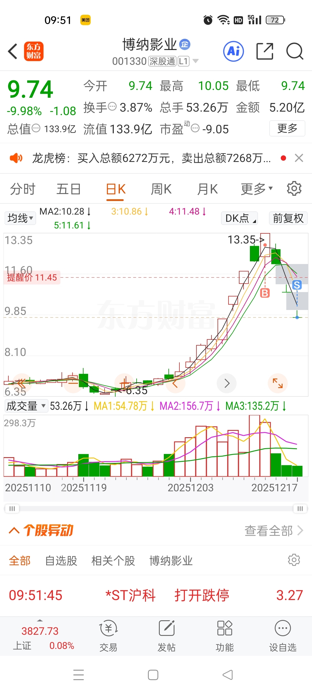 他嘛的,玩个短线被闷3个跌停,执行力不行短线就不能幻想,该止盈止损不能犹豫,不需