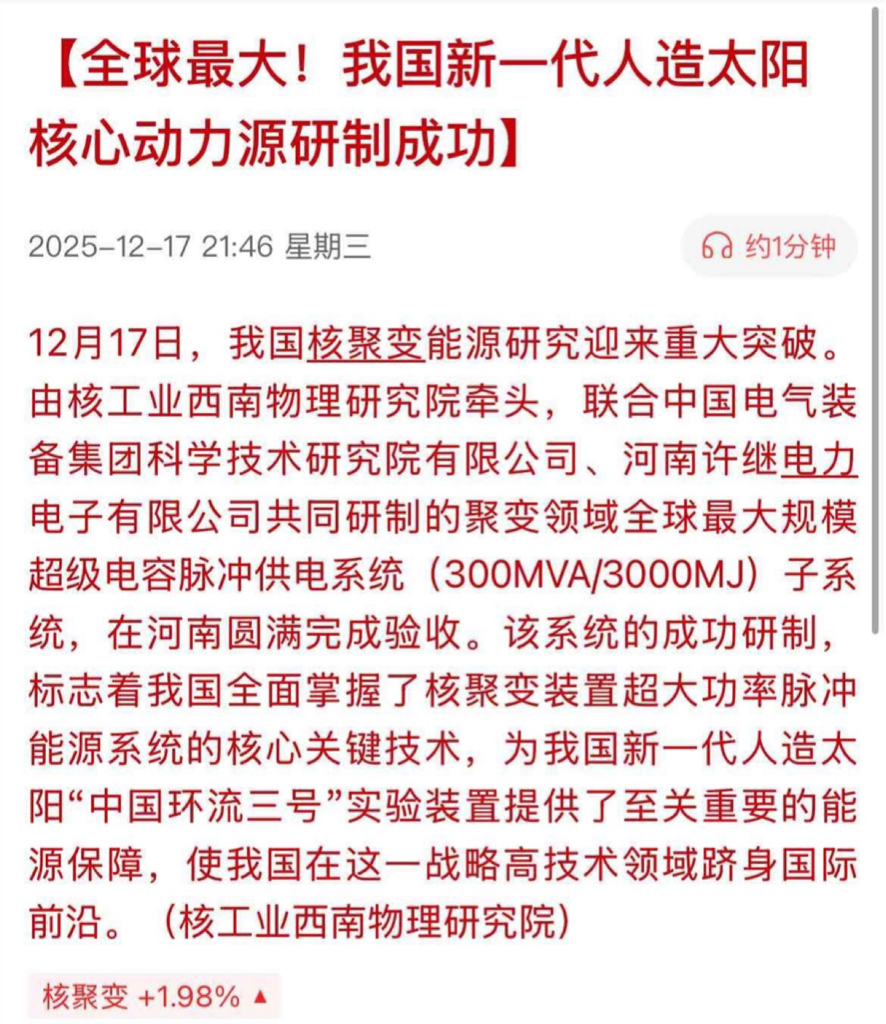 重磅利好,明天核聚变板块将高举高打