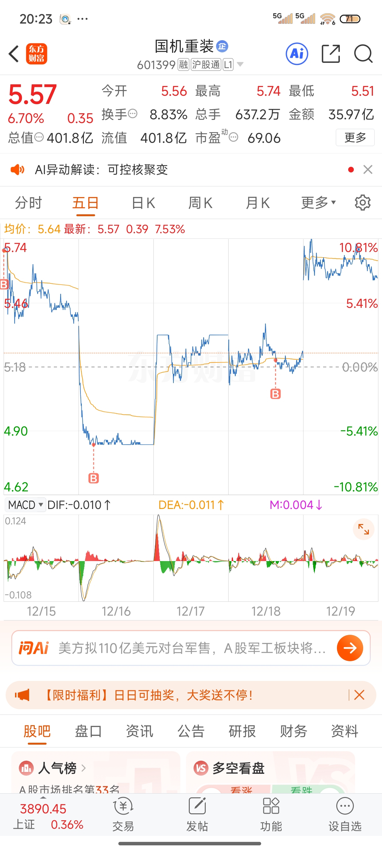 $国机重装(SH601399)$ 挂在过树梢,把握在最低,勉强在中间,这几天一直都是只买不卖,因为坚信,所以一直持有……