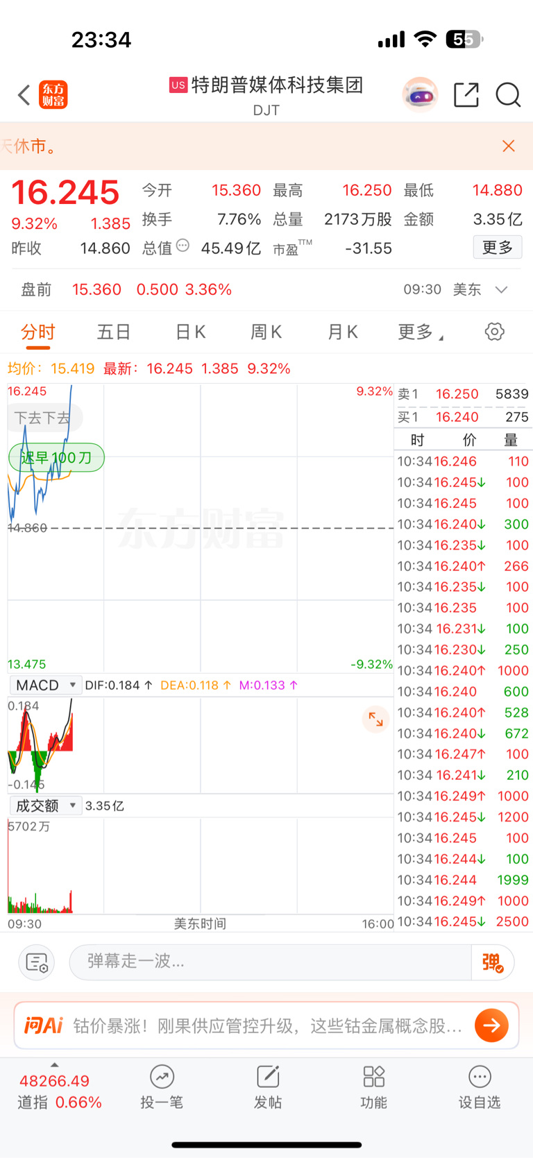 温馨提示: 1.根据《证券法》规定,禁止编造、传播虚假信息或者误导性信息,扰乱证券市场;2.用户在本社区发表的所有资料、言论等仅代表个人观点,与本网站立场无关,不对您构成任何投资建议。用户应基于自己的独立判断,自行决定证券投资并承担相应风险。《东方财富社区管理规定》