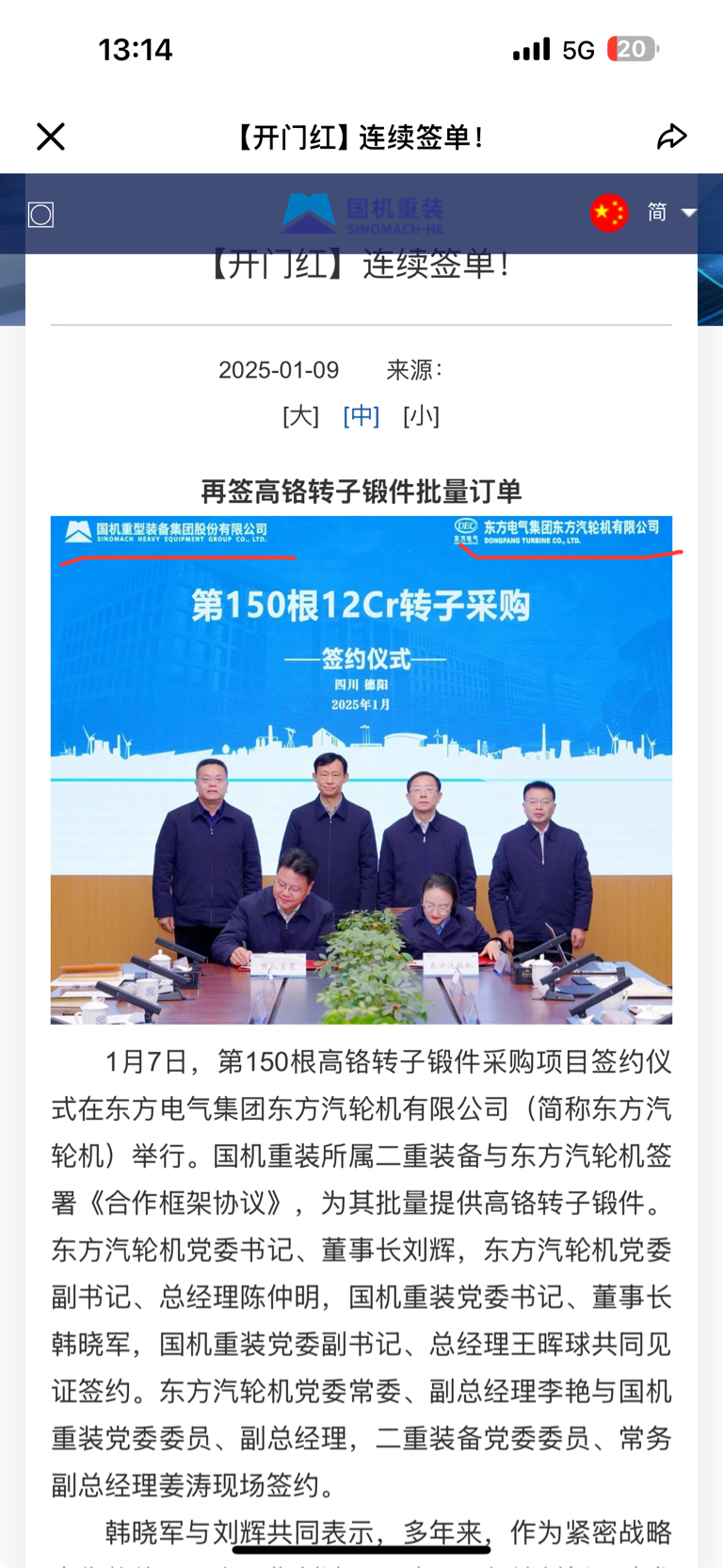 手握实打实的订单,这可不是蹭概念的虚架子!国机重装与东方汽轮机的合作是产业链上下