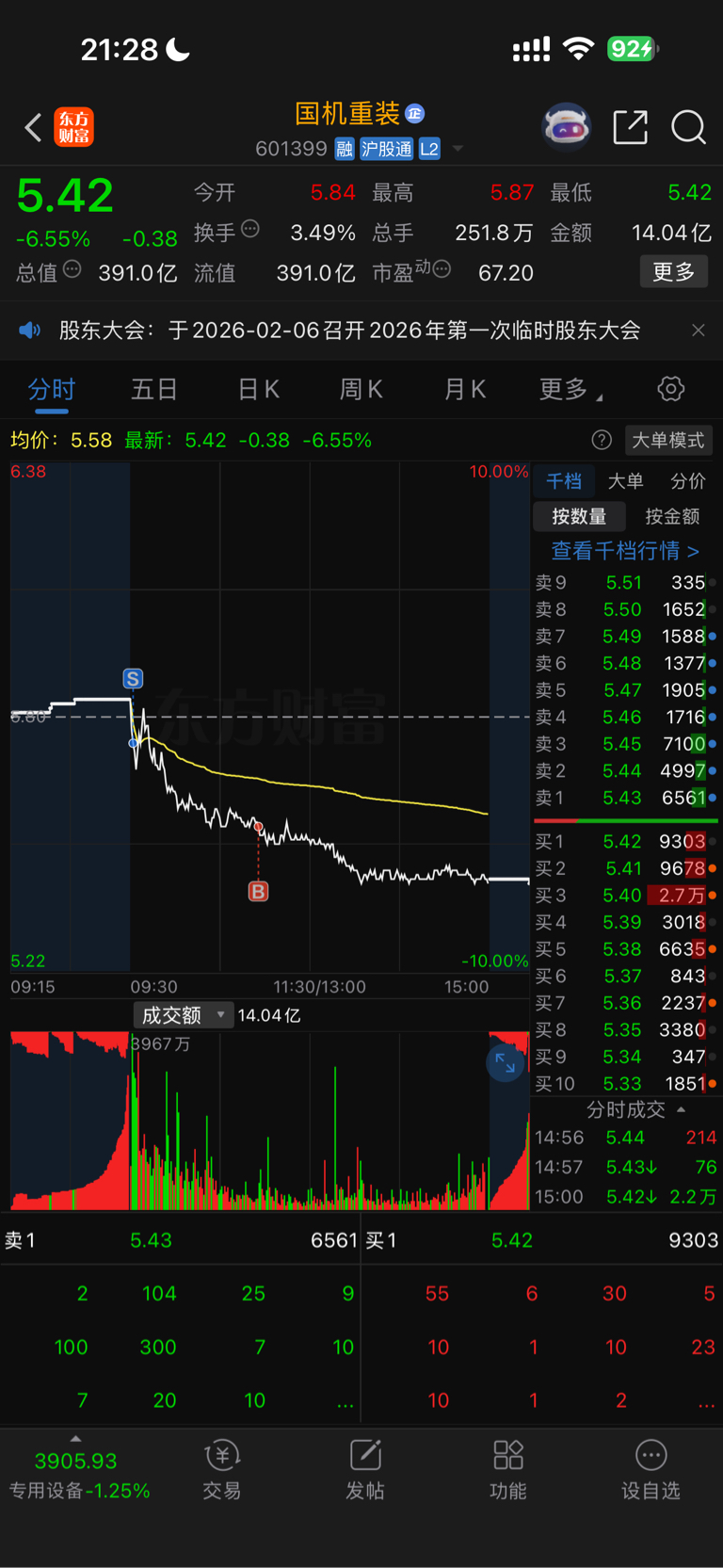 $国机重装(SH601399)$ 5.74卖了 5.55又接回来 老子以为今天做对了T结果还是被埋了 你真的是个糊不起的阿斗啊 寒心了