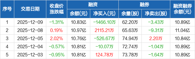 国联民生:融资净偿还1466.1万元,融资余额10.83亿元(12-09)