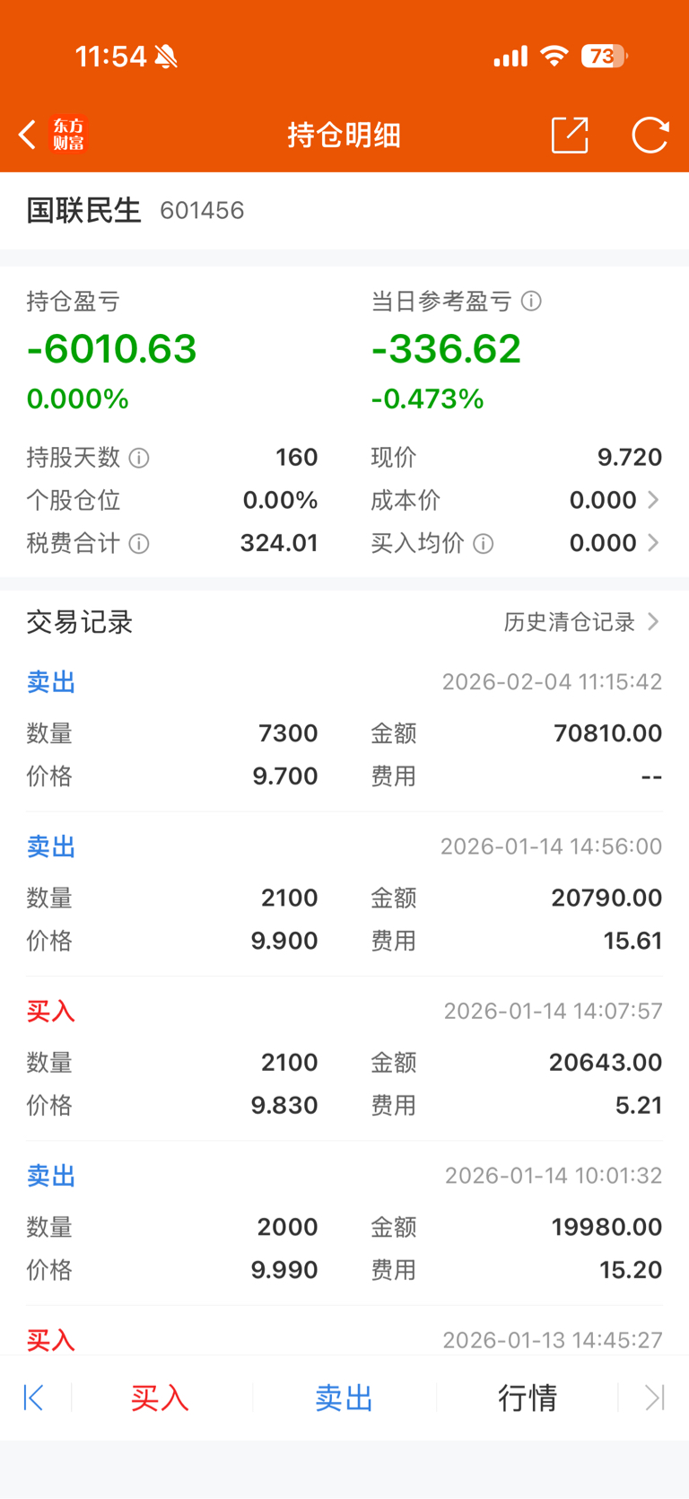 买入价11.85,持有160天,期间不断加仓,没有底,亏了6000割了,去大金融