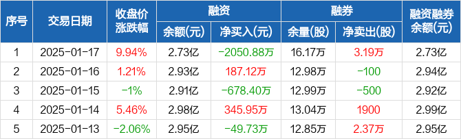 通用股份:融资净偿还2050.88万元,融资余额2.73亿元(01-17)