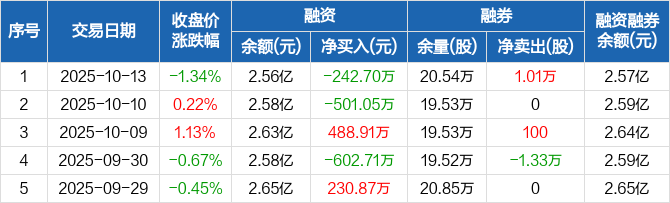 通用股份:融资净偿还242.7万元,融资余额2.56亿元(10-13)