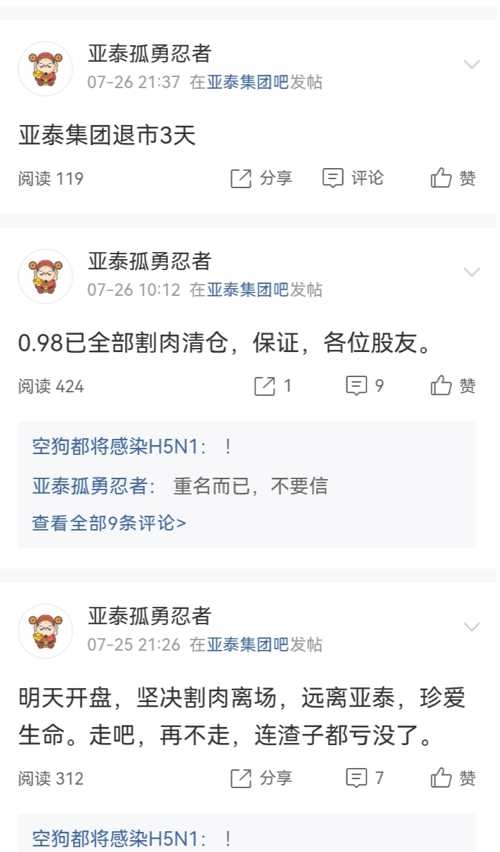 $通用股份(SH601500)$ 一拳打爆空狗蛋蛋,上一个空狗是九毛钱劝大家割肉亚泰集团的空狗,结果那轮亚泰大帝涨到了三块多,空狗踏空销户了,这次是哪个空狗打算割肉,别整天空叫,是男人就割肉,一股不留!