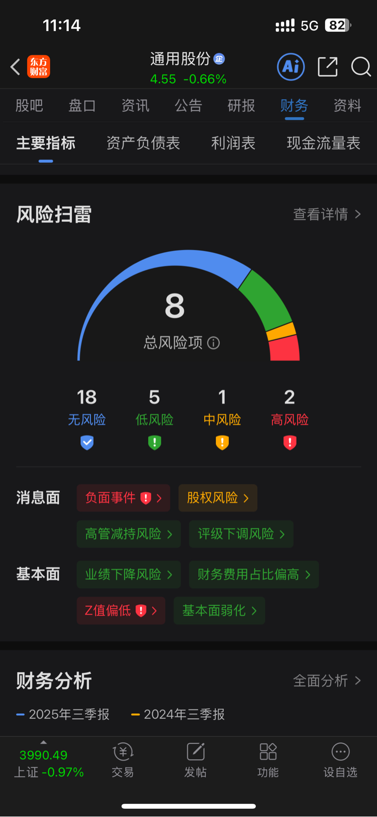 $通用股份(SH601500)$ 有退市风险提示