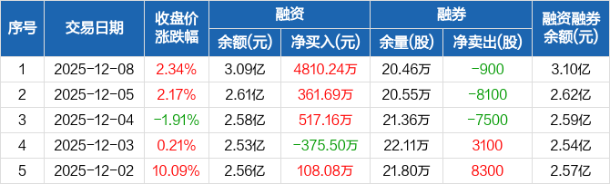 通用股份:融资净买入4810.24万元,创历史新高(12-08)