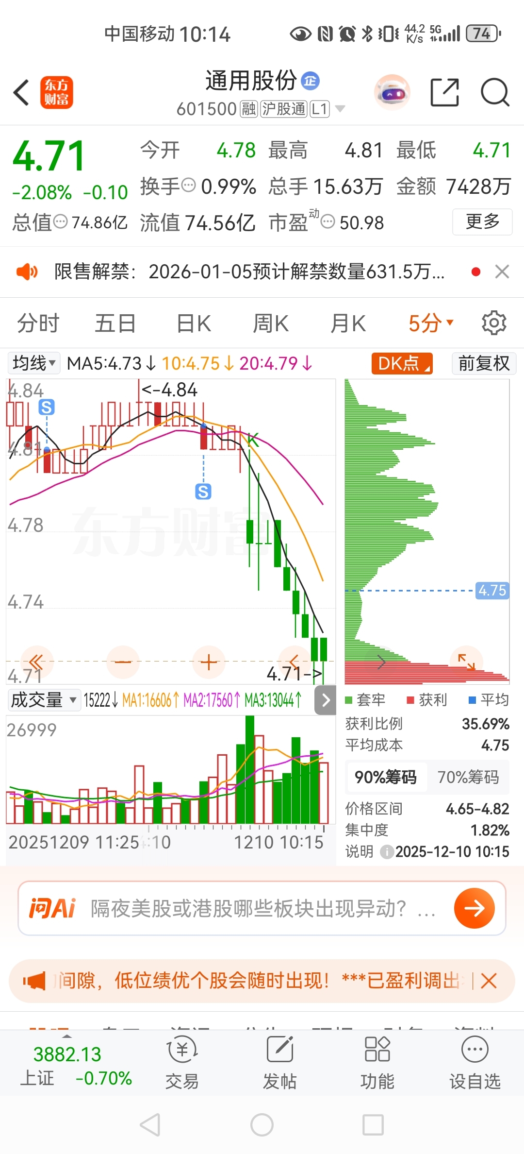 $通用股份(SH601500)$ 主力监控已经出现卖的信号了