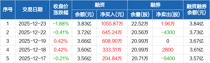 通用股份:融资余额3.83亿元,创历史新高(12-23)