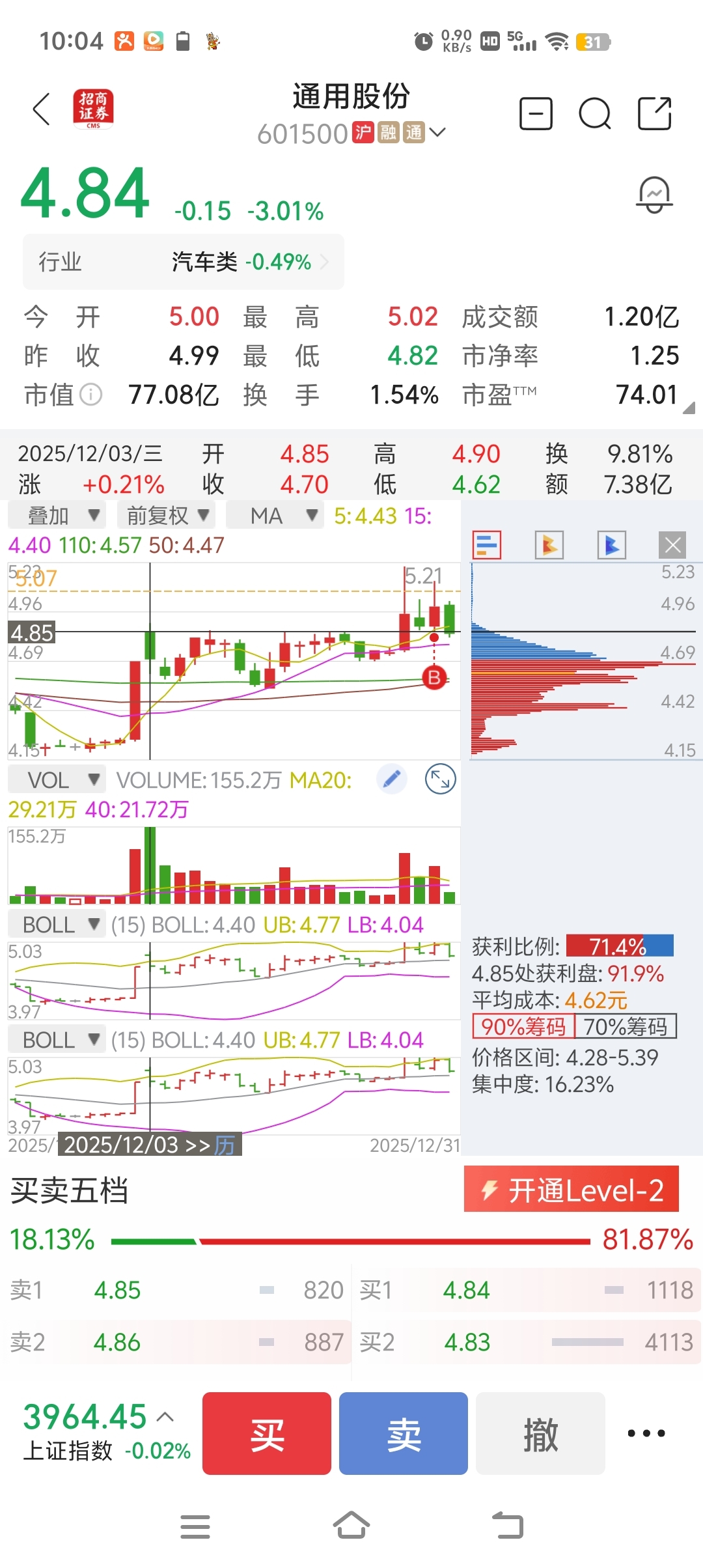 $通用股份(SH601500)$ 清洗4.85以上的筹码,谁是松动筹码谁走,唉。亏钱难受