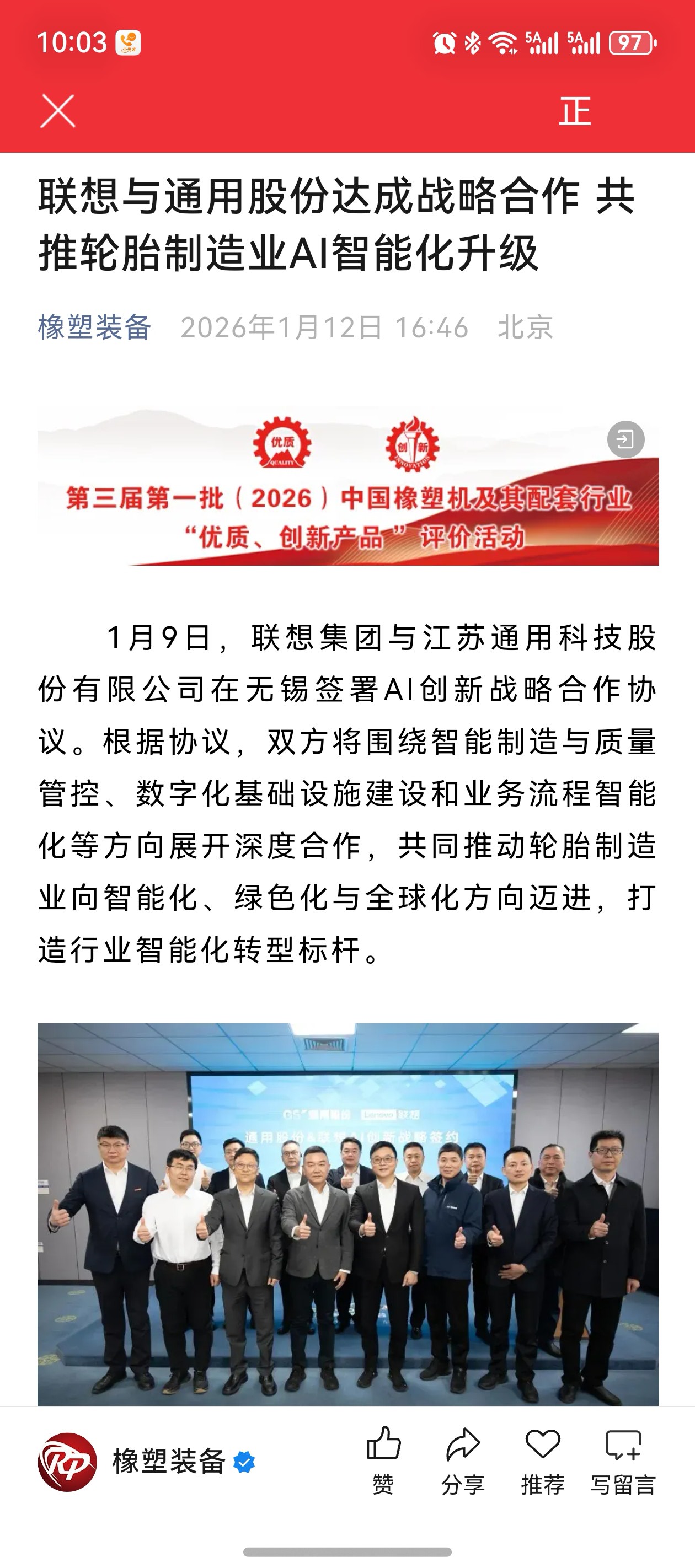 联想与通用股份达成战略合作共推轮胎制造业AI智能化升级