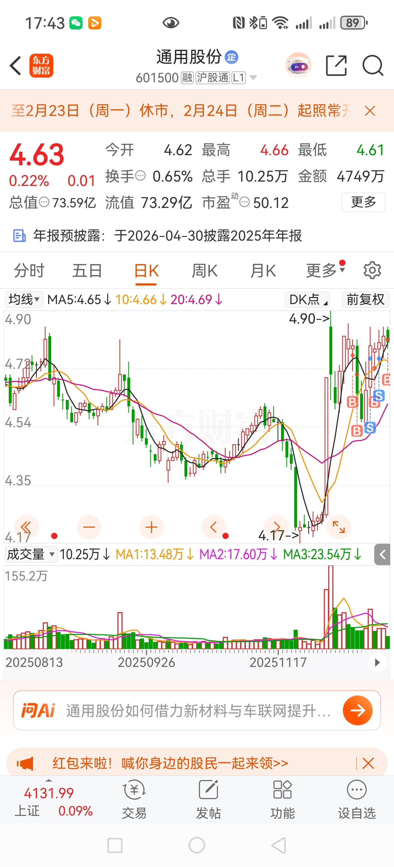 $通用股份(SH601500)$ 这个位置 线画的多好 可惜了