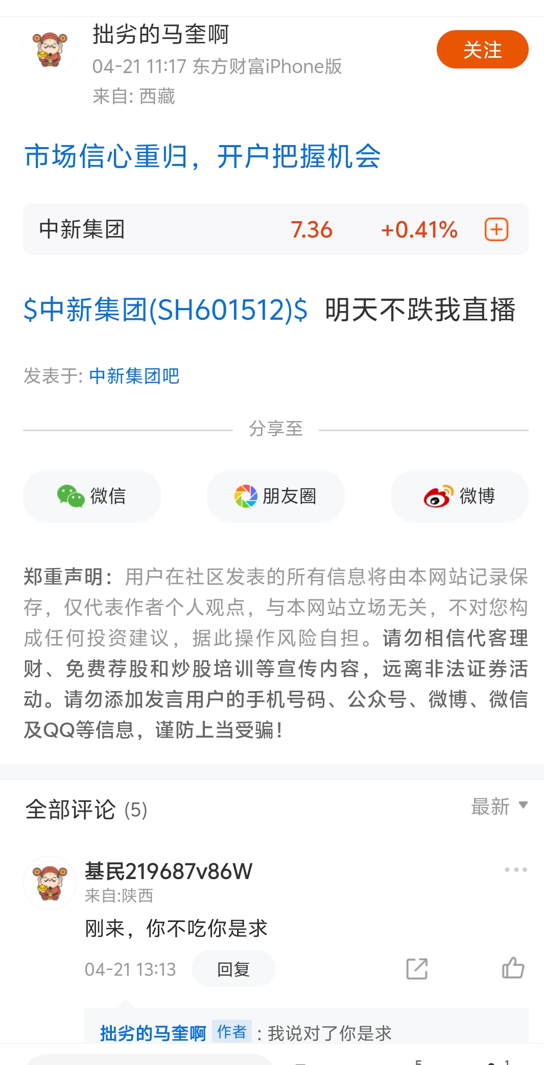 郑重声明:用户在财富号/股吧/博客等社区发表的所有信息(包括但不限于文字、视频、音频、数据及图表)仅代表个人观点,与本网站立场无关,不对您构成任何投资建议,据此操作风险自担。请勿相信代客理财、免费荐股和炒股培训等宣传内容,远离非法证券活动。请勿添加发言用户的手机号码、公众号、微博、微信及QQ等信息,谨防上当受骗!